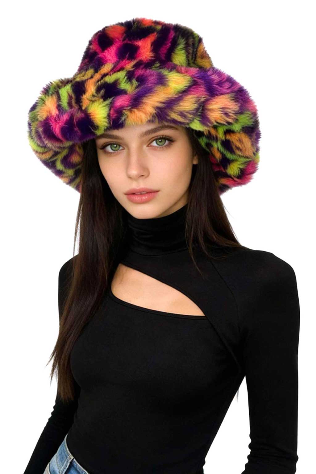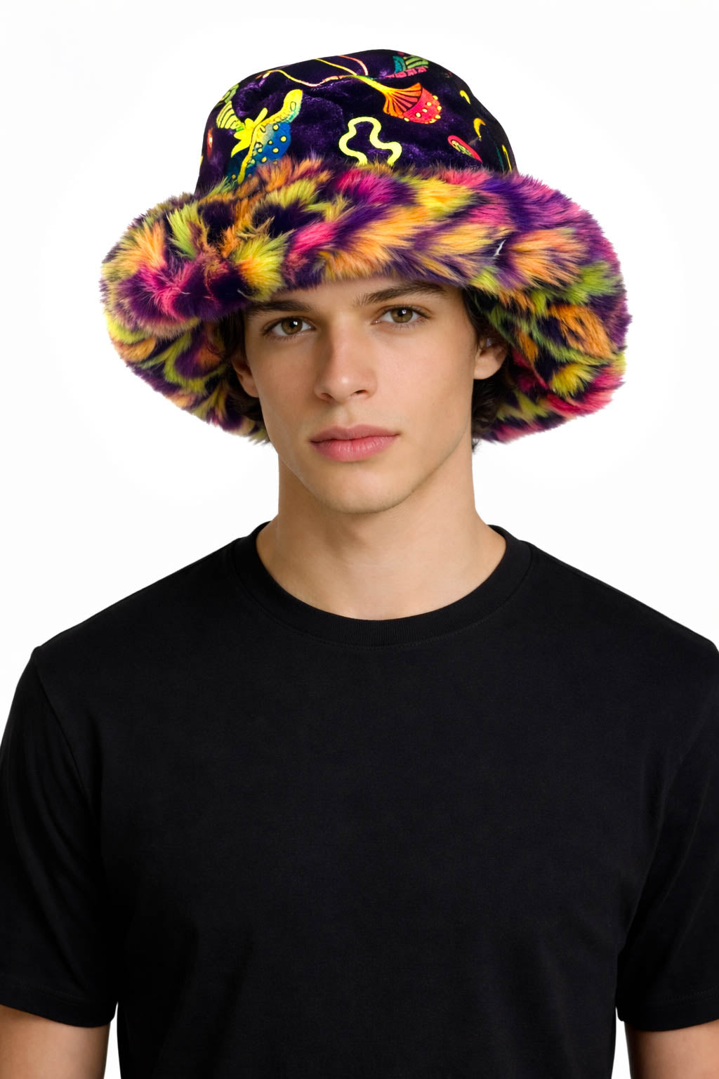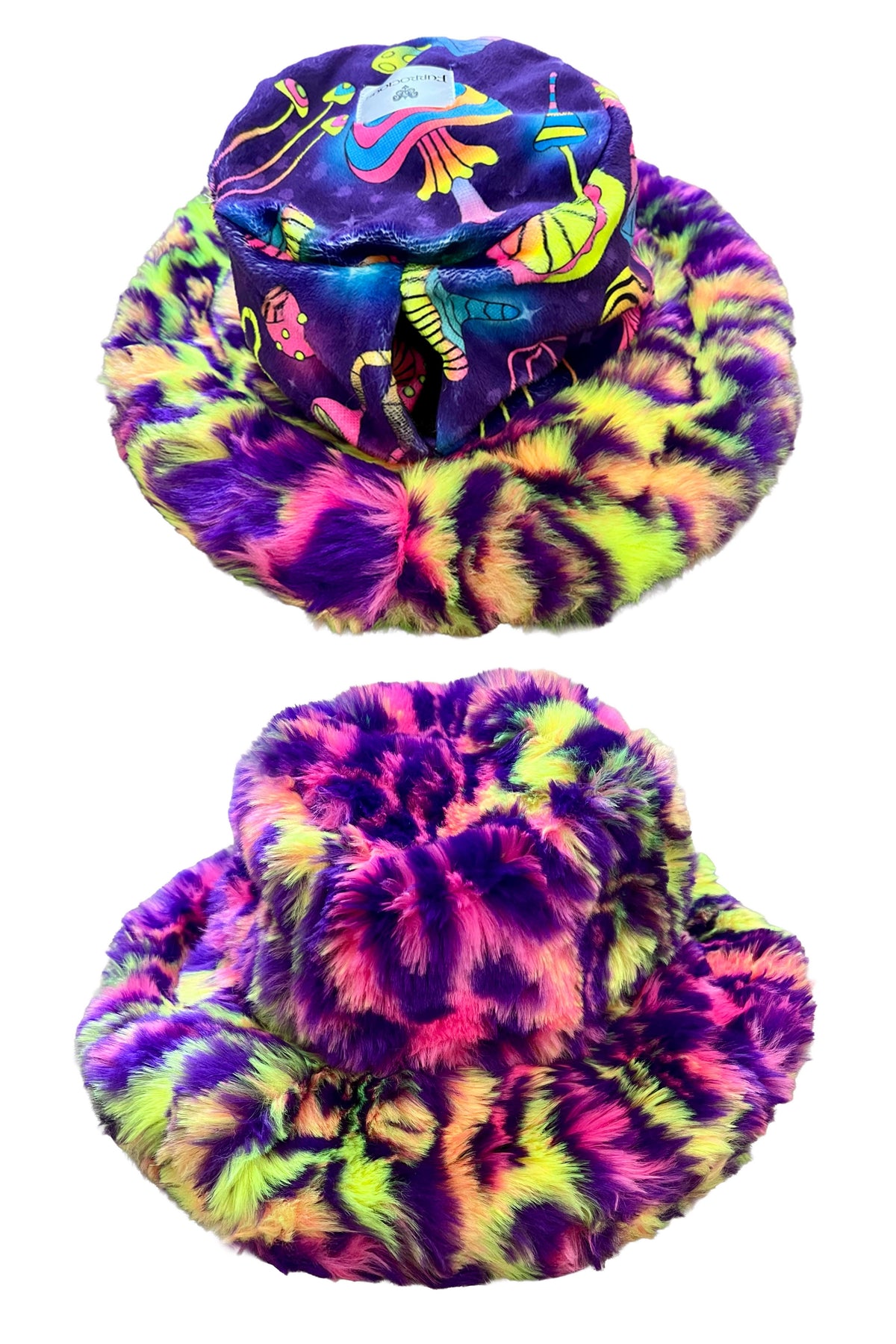 Our Reversible Neon Cheetah Faux Fur Bucket Hat is bold, cozy, and made to stand out. Crafted from luxury vegan faux fur, this hat is UV-reactive, glowing under blacklight while looking vibrant in everyday light.