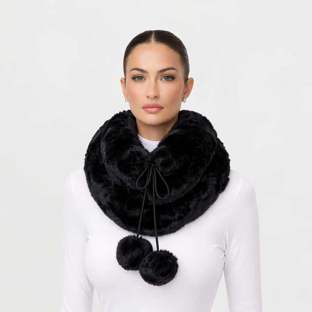 Infinity Pom Pom Tie Scarf in "Black"