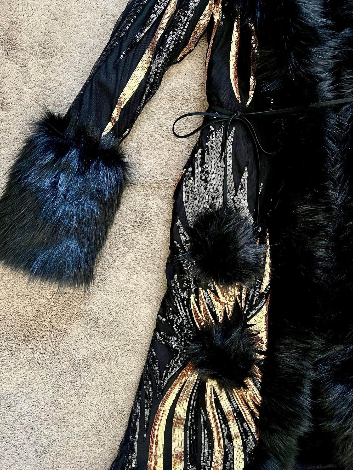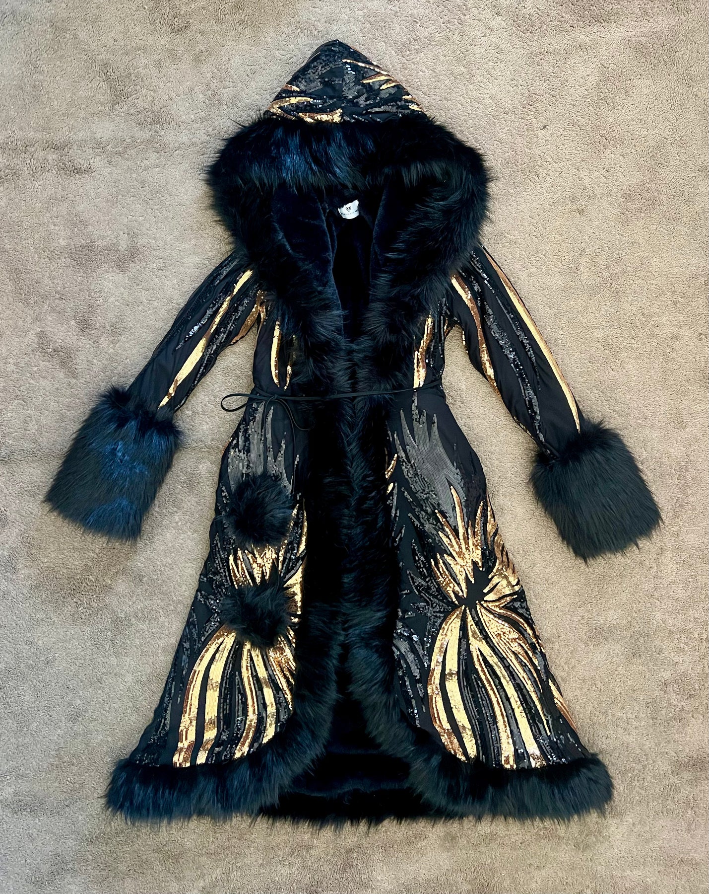 Women's Sequin Temptress Coat in "DELUX Black & Gold" STOCK