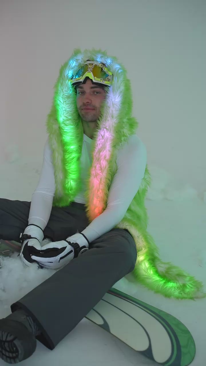 Men's LED Fur Vest in "Just The Tip-Lime"