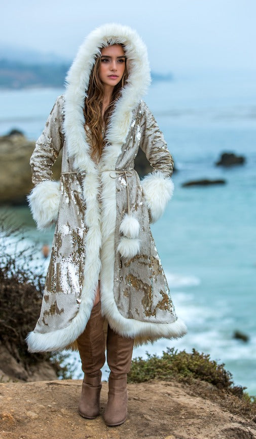 Women's Sequin Temptress Coat in "Ivory Gold"